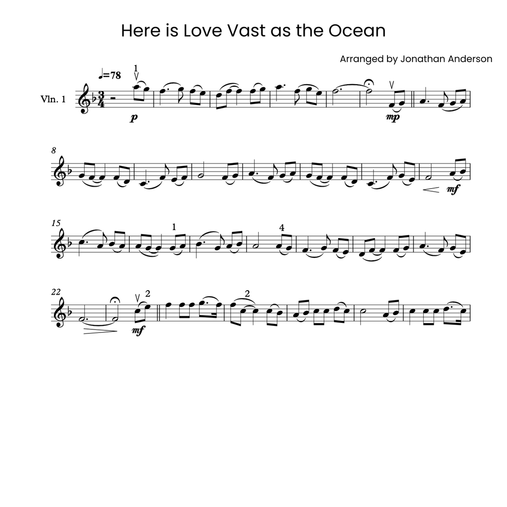 Get instant access to the digital download of the violin sheet music for the hymn "Here Is Love Vast As the Ocean."