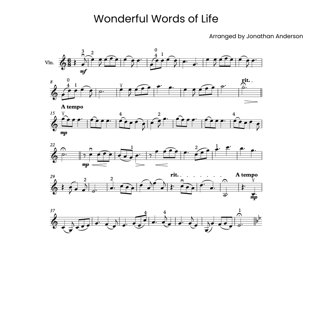Get instant access to the digital download of the violin sheet music for the hymn "Wonderful Words Of Life."